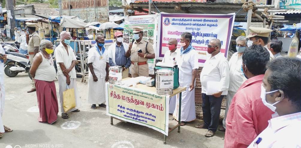 விளாத்திகுளம் உட்கோட்டத்தில் விளாத்திகுளம் துணை காவல் கண்காணிப்பாளர் திரு.பிரகாஷ் அவர்கள் தலைமையில் கொரோனா வைரஸ் விழிப்புணர்வு ஏற்படுத்தும் பொருட்டு காவல்துறையினர் மற்றும் விளாத்திகுளம் வர்த்தகக் கழகம் இணைந்து பொதுமக்களுக்கு கபசுர குடிநீர் மற்றும் முக கவசம் இலவசமாக அளித்து கொரோனோ வைரஸின் 2-வது அலை பரவி வரும் நிலையில் பொதுமக்களுக்கு விழிப்புணர்வு ஏற்படுத்தப்பட்டது.