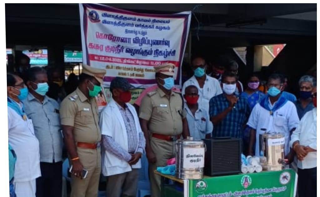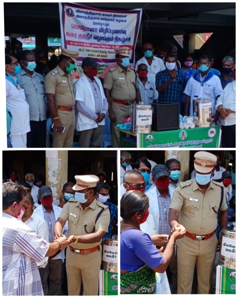 விளாத்திகுளம் உட்கோட்டத்தில் விளாத்திகுளம் துணை காவல் கண்காணிப்பாளர் திரு.பிரகாஷ் அவர்கள் தலைமையில் கொரோனா வைரஸ் விழிப்புணர்வு ஏற்படுத்தும் பொருட்டு காவல்துறையினர் மற்றும் விளாத்திகுளம் வர்த்தகக் கழகம், விளாத்திகுளம் தேர்வுநிலை பேரூராட்சி நிர்வாகம், சித்த மருத்துவத்துறை இணைந்து பொதுமக்களுக்கு கபசுர குடிநீர் மற்றும் முக கவசம் இலவசமாக அளித்து கொரோனோ வைரஸின் 2-வது அலை பரவி வரும் நிலையில் இன்று பொதுமக்களுக்கு விழிப்புணர்வு ஏற்படுத்தப்பட்டது.