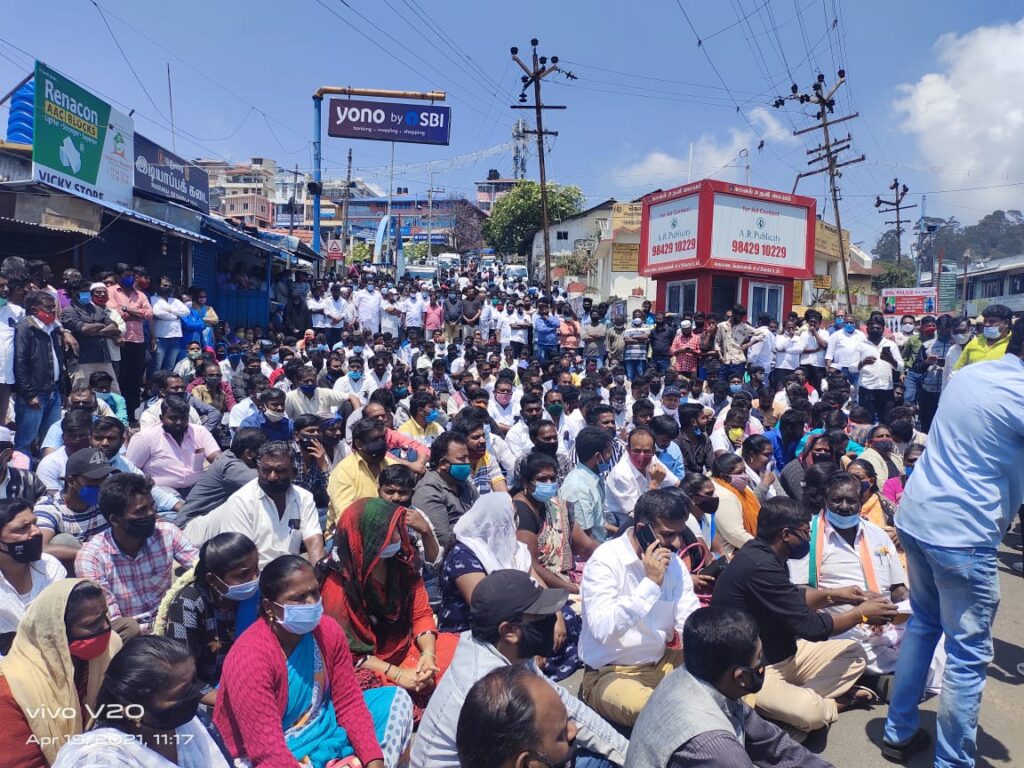 எனவே கொடைக்கானல் மக்கள் தங்கள் வாழ்வாதாரத்தை மீட்டெடுக்க இன்று( 19/04/2021)காலை 11 மணியளவில் சுமார் ஆயிரம் பேர் முக கவசம் அணிந்து மூஞ்சிகல் பேருந்து நிலையத்தில் முன்பு போராட்டத்தில் குதித்தனர்