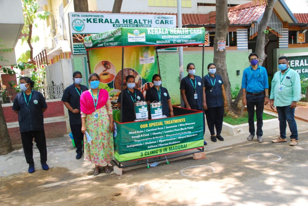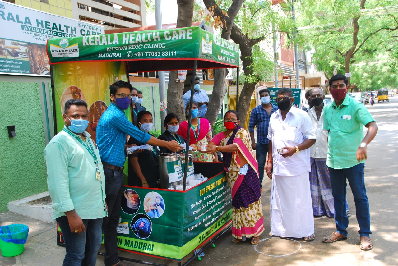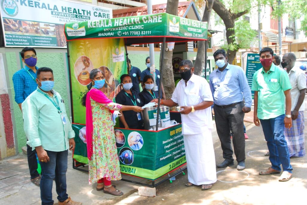 மதுரை கே.கே.நகர் ஆர்ச் அருகில் உள்ள கேரள ஆயுர்வேதிக் கிளினிக்கில் இலவச ஆயுஷ்க்வாத் மற்றும் கபசுர குடிநீர் வழங்கும் விழா நடந்தது.