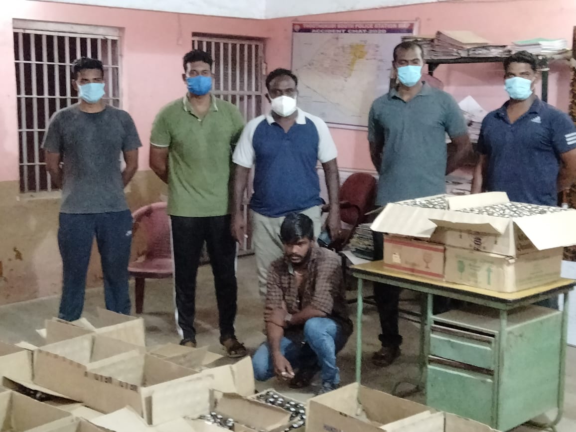 *தூத்துக்குடி மாவட்டத்தில் நேற்று (11.05.2021) காவல்துறையினர் தீவிர சோதனை மேற்கொண்டதில் தூத்துக்குடியில் தென்பாகம் உதவி ஆய்வாளர் திரு. வேல்ராஜ் தலைமையில் தலைமைக் காவலர்கள் திரு. பென்சிங், மாணிக்கம், சாமுவேல், செந்தில்குமார், மகாலிங்கம், முத்துப்பாண்டி மற்றும் திருமணிராஜன் ஆகியோர் அடங்கிய தனிப்படையினர் தென்பாகம் காவல் நிலையத்திற்குட்பட்ட அண்ணாநகரில் சட்டவிரோதமாக விற்பனை செய்வதற்காக பதுக்கி வைத்திருந்த அண்ணாநகரைச் சேர்ந்த பேச்சிமுத்து மகன் கிருஷ்ணன் என்ற கண்ணன் (23) என்பவரைக் கைது செய்து அவரிடமிருந்து 1872 மதுபாட்டில்களையும் பறிமுதல் செய்தனர்.*