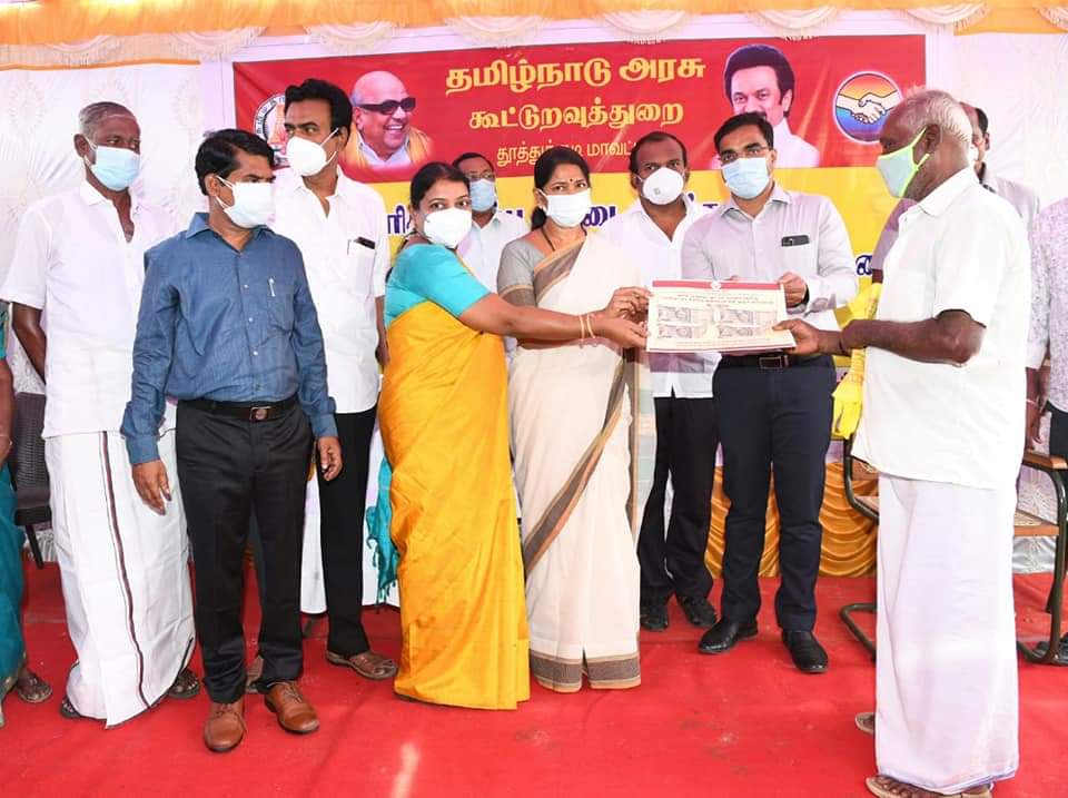 இந்நிலையில், தூத்துக்குடி போல்பேட்டையில் உள்ள நியாயவிலைக் கடையில் மாவட்ட ஆட்சியர் செந்தில்ராஜ் தலைமையில் நடைபெற்ற நிகழ்ச்சியில், ரூ.2 ஆயிரம் கரோனா நிவாரண உதவி வழங்கும் திட்டத்தை, தூத்துக்குடி பாராளுமன்ற உறுப்பினர் கனிமொழி, சமூக நலன் – மகளிர் உரிமைத்துறை அமைச்சர் கீதாஜீவன் ஆகியோர் கலந்துகொண்டு தொடங்கி வைத்தனர். இந்நிகழ்ச்சியில், திமுக பொதுக்குழு உறுப்பினர் என்.பி.ஜெகன், ஆனந்தசேகரன், ஜீவன் ஜேக்கப் மற்றும் கூட்டுறவுத்துறை அதிகாரிகள், பொதுமக்கள் உள்ளிட்ட பலர் கலந்து கொண்டனர்.