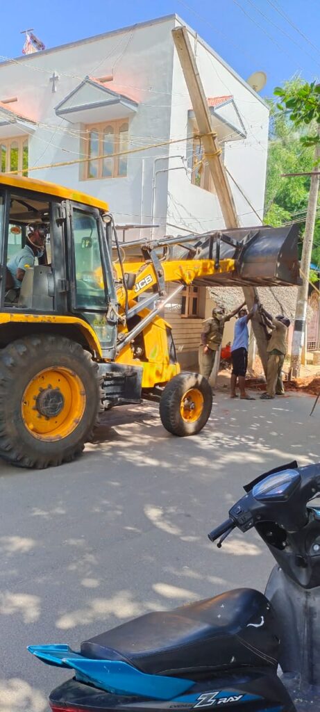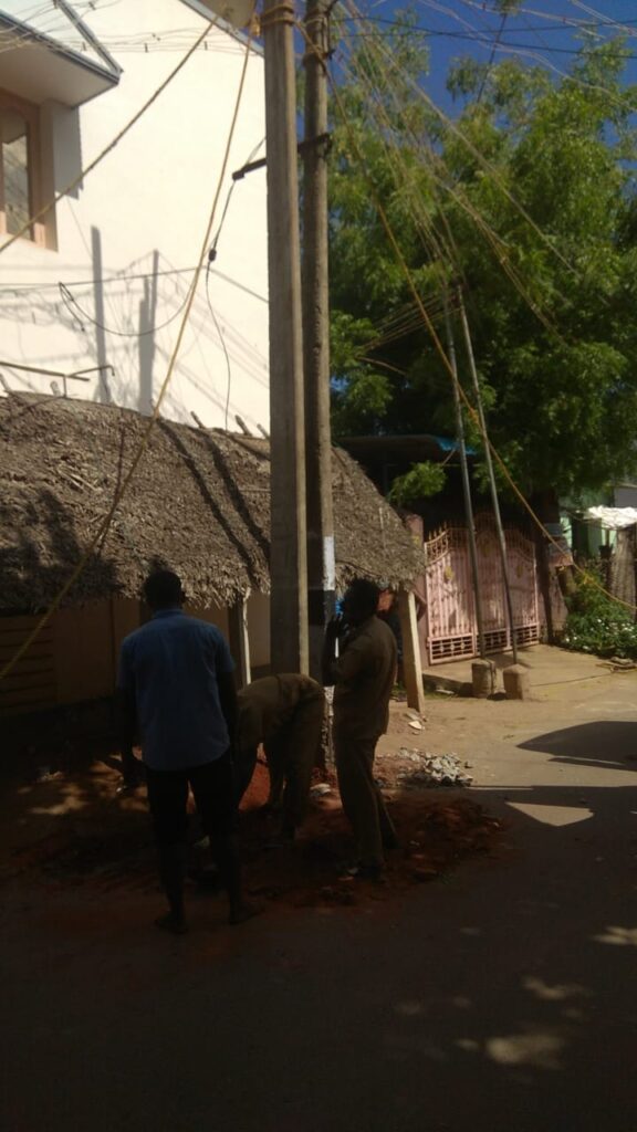 பத்திரகாளியம்மன் கோயிலுக்கு எதிரில் உள்ள மின் கம்பம் ஆபத்தான நிலையில் இருப்பதால் மாற்ற வேண்டும் என்ற கோரிக்கையின் பேரில் துரித நடவடிக்கை எடுத்து புதிய மின் கம்பம் மாற்றி அமைக்கப்பட்டது.