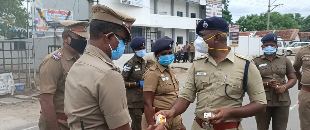 அங்குள்ள காவல் துறையினர்க்கு ஊட்டச்சத்து பாணம் மற்றும் முகக்கவசங்களை வழங்கினார்கள்.