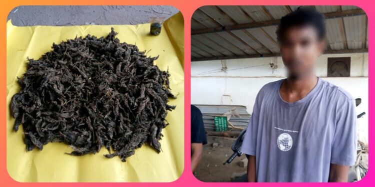 மாவட்ட காவல் கண்காணிப்பாளர் அவர்கள் உத்தரவுப்படி தூத்துக்குடி நகர காவல் துணை கண்காணிப்பாளர் திரு. கணேஷ் அவர்கள் மேற்பார்வையில் உதவி ஆய்வாளர் திரு. வேல்ராஜ் தலைமையில் தலைமைக் காவலர்கள் திரு. பென்சிங், திரு. மாணிக்கம், திரு. சாமுவேல், திரு.செந்தில் குமார், திரு. மகாலிங்கம், திரு. முத்துப்பாண்டி மற்றும் திரு. திருமணிராஜன் ஆகியோர் அடங்கிய தனிப்படையினர் ரோந்து மேற்கொண்டபோது முத்தையாபுரம் காவல் நிலைய எல்லைக்குட்பட்ட முத்தையாபுரம் உப்பாத்து ஓடைப்பாலம் அருகே சட்ட விரோதமாக விற்பனை செய்வதற்காக கஞ்சாவை வைத்திருந்த தூத்துக்குடி மட்டக்கடை சேதுராஜா தெருவைச் சேர்ந்த கணேசன் மகன் ஹரிகரன் (21) என்பரைக் கைது செய்து, அவரிடமிருந்த 1.100 கிலோ கிராம் கஞ்சாவை பறிமுதல் செய்தனர். இது குறித்து முத்தையாபுரம் காவல் நிலைய போலீசார் வழக்குப்பதிவு செய்து விசாரணை மேற்கொண்டு வருகின்றனர்.