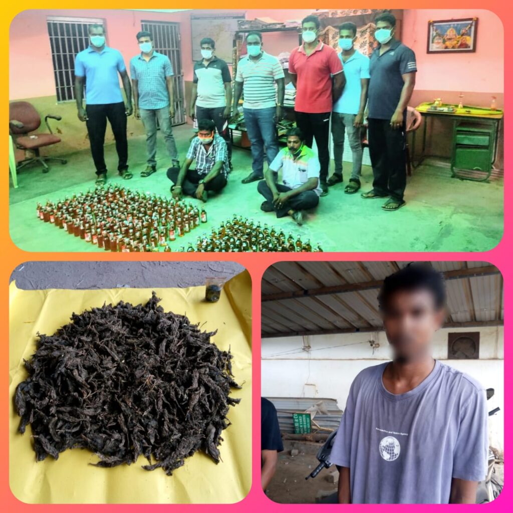 சட்ட விரோதமாக கஞ்சா மற்றும் மதுபானம் விற்பனை செய்த மேற்படி 3 பேரை கைது செய்து அவர்களிடமிருந்து கஞ்சா மற்றும் மதுபாட்டில்களை பறிமுதல் செய்த மேற்படி தனிப்படையினரை மாவட்ட காவல் கண்காணிப்பாளர் திரு. எஸ். ஜெயக்குமார் அவர்கள் பாராட்டினார்.