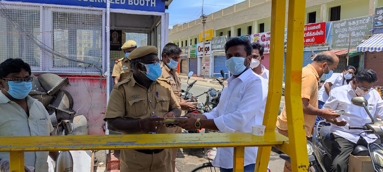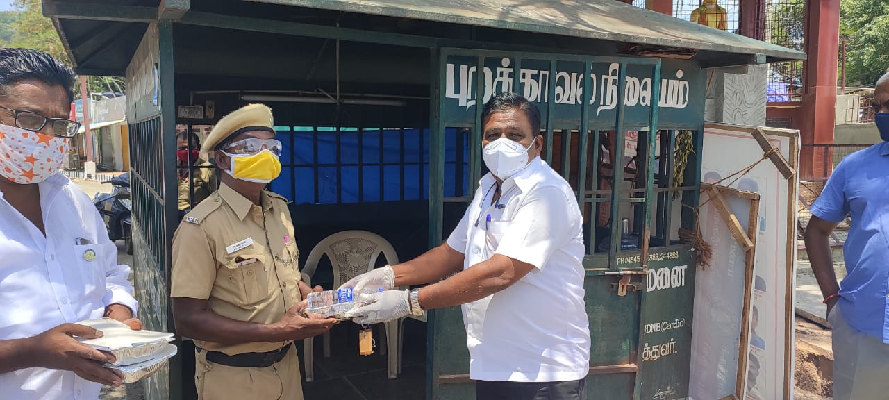 திண்டுக்கல் மாவட்டம் பழநி நகரத்தில் ஊரடங்கின் போது இரவு பகல் பாராது காவல் பணியில் ஈடுபட்டிருக்கும் காவல் துறையினருக்கு பழனி நகர காவல் ஆய்வாளர் உயர்திரு பாலகுரு அவர்கள் முன்னிலையில் மக்கள் உரிமைகள் பாதுகாப்பு கழகத்தின் சார்பாக மாநில துணைத் தலைவர் அன்பு அண்ணன் ரஞ்சித் குமார் திண்டுக்கல் மேற்கு மாவட்ட செயலாளர் அன்பு அண்ணன் பாலசுப்பிரமணியன் (பாலு) மேற்கு மாவட்ட அமைப்பாளர் அன்பு அண்ணன் லயன் இமாம் ஜாபர் சாதிக் அலி மேற்கு மாவட்ட அமைப்பாளர் அன்பு அண்ணன் பாலசுப்பிரமணியம் பழநி நகர செயலாளர் அன்பு சகோதரர் ராபர்ட் நகர ஒருங்கிணைப்பாளர் அன்பு அண்ணன் ராஜரத்தினம் அன்பு அண்ணன் அம்மா பட்டிதுறை கமால்தீன் இணைந்து உணவும் குடிநீரும் வழங்கினார்கள்..