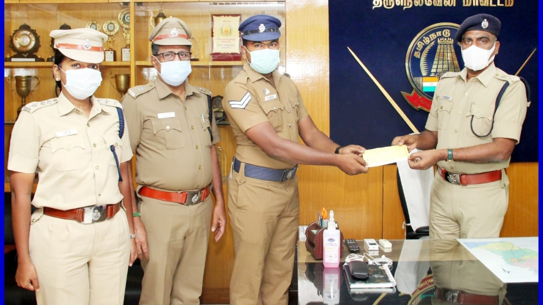 திருநெல்வேலி மாவட்ட காவல்துறையில் தனிப்பிரிவில் உதவி ஆய்வாளராக பணிபுரிந்து வரும் சங்கர் அவர்கள் கொரோனா வைரஸ் நோய் தொற்றிற்கான தமிழக முதலமைச்சர் கொரோனா நிவாரண நிதிக்கு அவருடைய ஒரு மாத சம்பளத் தொகையான ₹60,000/- க்கு உண்டான சம்மத கடிதத்தையும், சேரன்மகாதேவி காவல் நிலையத்தில் பணிபுரிந்து வரும் முதல் நிலை காவலர் திரு சுதர்சன் அவர்கள் முதலமைச்சர் நிவாரண நிதிக்கு ₹10,000/-க்கான வரைவோலையை திருநெல்வேலி மாவட்டக் காவல் கண்காணிப்பாளர் திரு.நெ.மணிவண்ணன் இ.கா.ப., அவர்களிடம் இன்று வழங்கினார்கள். உதவி ஆய்வாளர் மற்றும் காவலரின் இந்நற்செயலை திருநெல்வேலி மாவட்ட போலீஸ் சூப்பிரண்டு மணிவண்ணன் ஐ.பி.எஸ் வெகுவாக பாராட்டினார்.