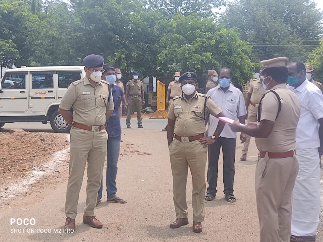 திண்டுக்கல் சரக டி ஐ ஜி முத்துசாமி,, தேனி மாவட்ட போலீஸ் சூப்பிரண்டு சாய் சரண் தேஜஸ், பெரியகுளம் துணை கண்காணிப்பாளர் முத்துக்குமார் ,ஆகிய மூவரும் பெரியகுளம் எண்டபுளி ஊராட்சியில் கொரோனா தொற்று அதிகம் பாதிக்கப்பட்ட பகுதியை ஆய்வு மேற்கொண்டனர்.