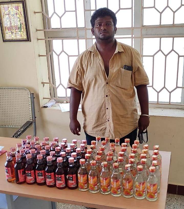 தூத்துக்குடி தென்பாகம் காவல் நிலைய உதவி ஆய்வாளர் வேல்ராஜ் தலைமையிலான தனிப்படையினர் இன்று (30.05.2021) ரோந்து பணி மேற்கொண்டபோது வடபாகம் காவல் நிலைய எல்லைக்குட்பட்ட புதிய பேருந்து நிலையம் பின்புறம் பகுதியில் வைத்து தூத்துக்குடி பூபால்ராயபுரம் பகுதியைச் சேர்ந்த அந்தோணிராஜ் மகன் டேனியல் (27) என்பவர் சட்டவிரோதமாக மது பாட்டில்கள் விற்பனை ஈடுபட்டது தெரியவந்தது.