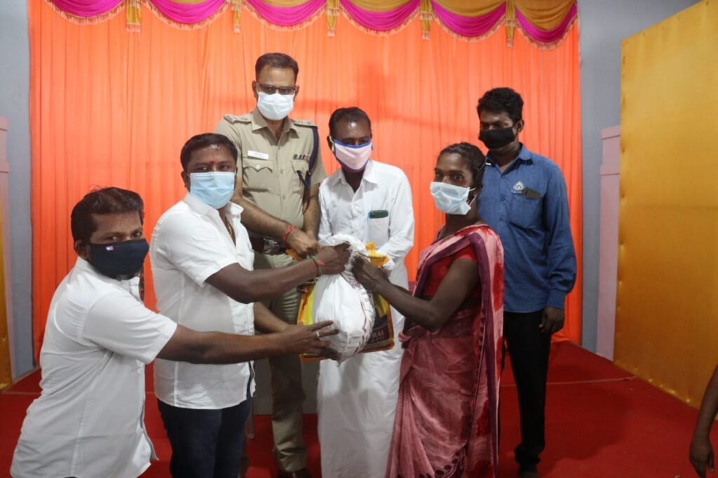மளிகைப்பொருட்கள் அடங்கிய நிவாரண உதவிகள் செய்து கொடுக்கப்பட்டுள்ளது. பொதுமக்கள் அனைவரும் தடுப்பூசி போட்டுக் கொள்ளவேணடும், முகக்