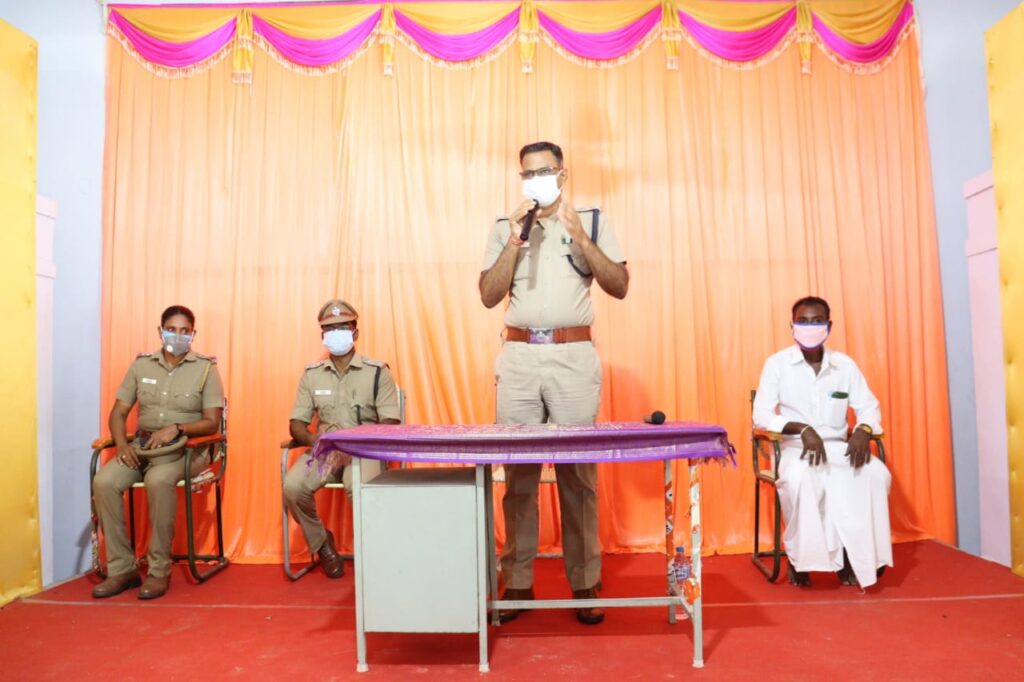 கவசம் அணிந்து கொள்ள வேணடும், அடிக்கடி கைகளை கிருமி நாசினி மற்றும் சோப்பு போட்டு சுத்தம் செய்து கொள்ள வேண்டும், சமூக இடைவெளி கடைபிடிகக் வேண்டும் என்றும் மேலும் அரசு நடைமுறைபடுத்தியுள்ள இந்த ஊரடங்கு உத்தரவை பொதுமக்களாகி நீங்கள் கண்டிப்பாக கடைபிடித்து ஒத்துழைப்பு கொடுத்தால் கொரோனா தொற்றிலிருந்து நம்மை நாம் காப்பாற்றி கொள்ள முடியும் என்று மாவட்ட காவல் கண்காணிப்பாளர் திரு. எஸ்.