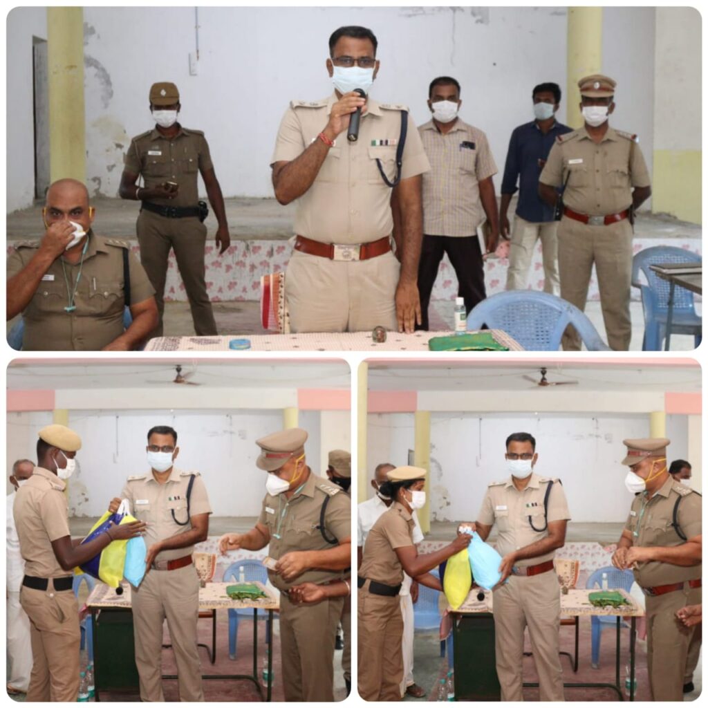 அப்போது அவர் பேசுகையில், கொரோனா 2வது அலை மிக வேகமாக பரவி வருகிறது, அதற்காக தமிழக அரசு வரும் 7ம் தேதி வரை முழு ஊரடங்கு பிறப்பித்துள்ளது. இந்நிலையில் ஊரடங்கு உத்தரவை அமல்படுத்துவதில் ஊர்க்காவல் படையினரின் பணி மிகவும் சிறப்பாக உள்ளது, எல்லோரும் இரவு, பகல் பாராமல் மிக சிறப்பாக காவல்துறையினருடன் இணைந்து பணியாற்றி காவல்துறைக்கு பெருமை சேர்த்து வருகிறீர்கள். முதலில் அதற்காக எனது மனமார்ந்த நன்றியை தெரிவித்துக் கொள்கிறேன். அதே சமயத்தில் உங்களது ஆரோக்கியத்தையும் பார்த்துக் கொள்ள வேண்டும். தடுப்பூசி போட்டுக் கொள்ளாதவர்கள் போட்டுக் கொள்ள வேண்டும். அதே போன்று பணிக்கு சென்;றாலும் சரி, எப்போது வீட்டை விட்டு வெளியில் சென்றாலும் மூக்கை நன்றாக மூடி முகக் கவசம் அணிய வேண்டும், அதிலும் 2 முகக்கவசம் அணிவது மிகவும் நல்லது, அடிக்கடி கைகளை சோப்பு மற்றும் கிருமி நாசினி கொண்டு சுத்தம் செய்யவேண்டும், எங்கு சென்றாலும் சமூக இடைவெளியை கடைபிடிக்க வேண்டும், அப்போதுதான் இந்த வைரஸ் தாக்கத்தலிருந்து நாம் விடுபட முடியும் என்று மாவட்ட காவல் கண்காணிப்பாளர் திரு. எஸ். ஜெயக்குமார் அவர்கள் சிறப்புரையாற்றினார்.*