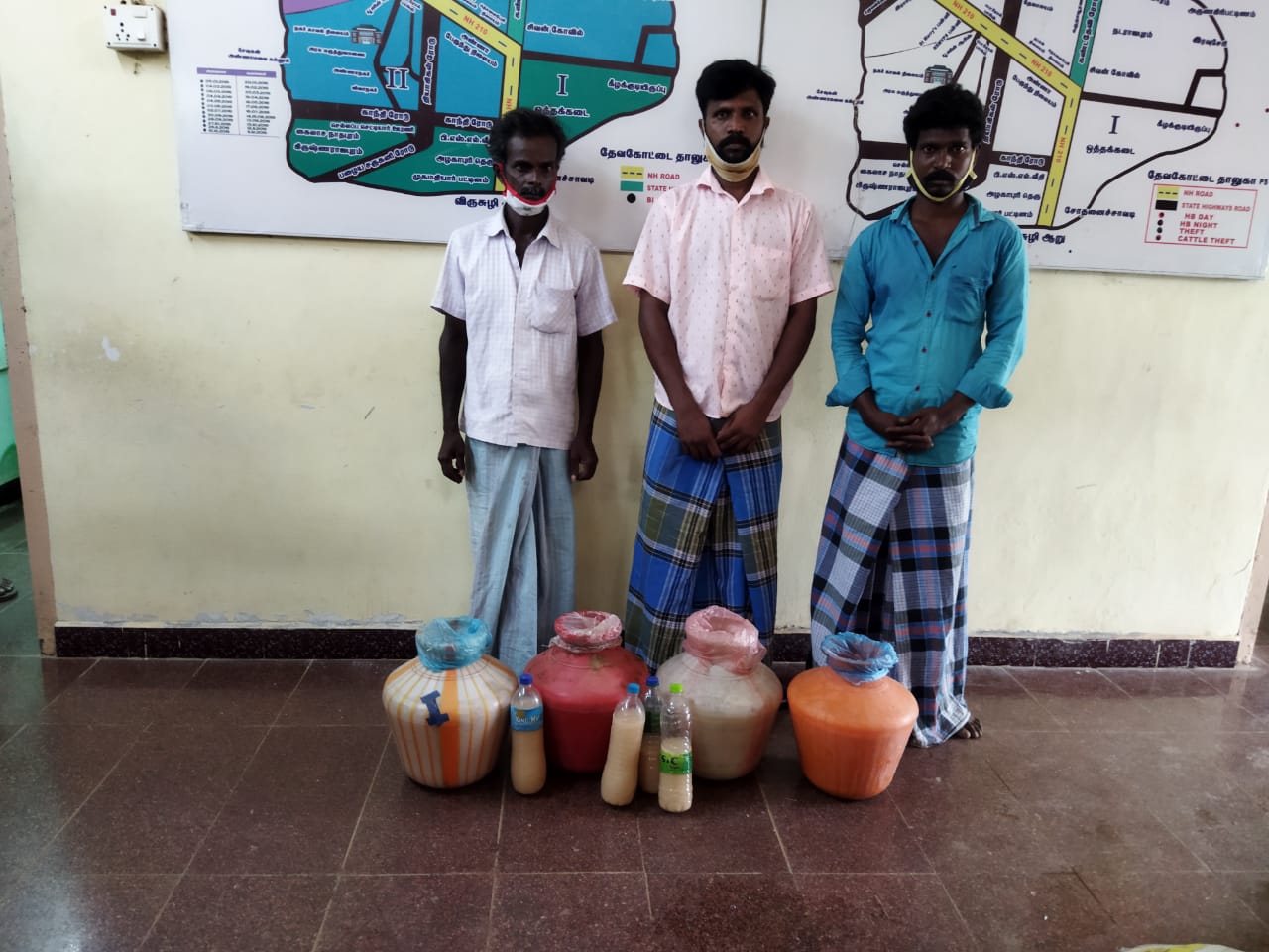 தேவகோட்டை அருகே தாழையூரில் சாராய ஊறல் போட்ட மூன்று பேரை மதுவிலக்கு காவல்துறையினர் கைது செய்தனர்