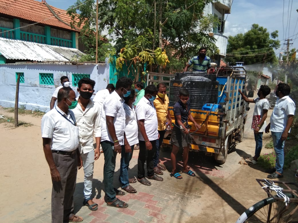 இந்நிலையில் பகுதிக்குட்பட்ட அனைத்து பகுதிகளிலும் கிரிமிநாசினி தெளிக்கும் பணியை திமுக ஊராட்சி செயலாளரும் கூட்டுறவு கடன்சங்க தலைவரும் மாப்பிள்ளையூரணி பஞ்சாயத்து தலைவருமான சரவணக்குமார் துவக்கி வைத்தார்.