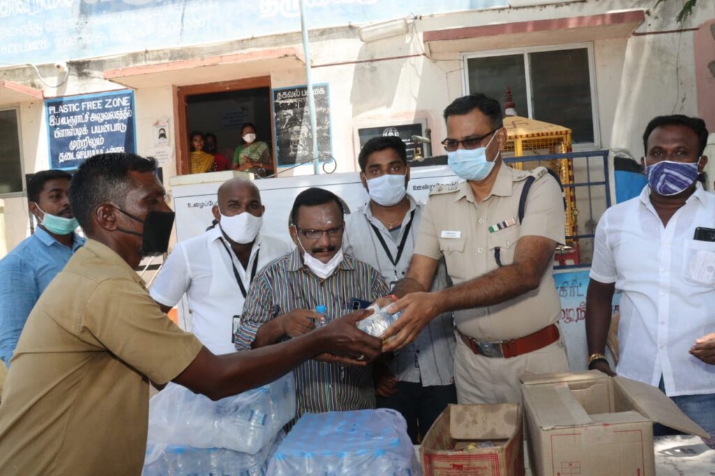 தூத்துக்குடி மாவட்டம் ஸ்ரீவைகுண்டம் பேரூராட்சி அலுவலகம் முன்பு சட்டம் விழிப்புணர்வு இயக்கம் சார்பாக தூய்மை பணியாளர்கள் 50 பேருக்கு மதிய உணவு பொட்டலங்கள் வழங்க ஏற்பாடு செய்யப்பட்டிருந்தது. அதன்படி மாவட்ட காவல் கண்காணிப்பாளர் திரு. எஸ். ஜெயக்குமார் அவர்கள் சிறப்பு விருந்தினராக கலந்து கொண்டு உணவு தூய்மை பணியாளர்களுக்கு உணவு பொட்டலங்கள் வழங்கி விழிப்புணர்வு ஏற்படுத்தினார்.