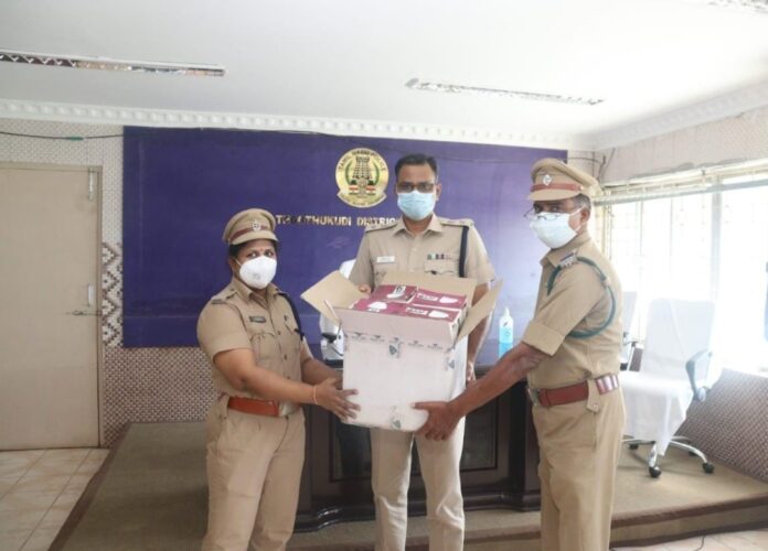 தூத்துக்குடி மாவட்டத்தில் ஊர்க்காவல் படையினர் 317 பேர் சேவையாற்றி வருகிறார்கள். இவர்கள் பாதுகாப்பு பணி, போக்குவரத்து சீர் செய்தல் போன்ற பல பணிகளில் காவல்துறையினருடன் இணைந்து சிறப்பாக பணியாற்றி வருகிறார்கள். இந்த கொரோனா கால ஊரடங்கு பாதுகாப்பு பணியில் ஊர்க்காவல் படையினர் முக்கிய பங்காற்றி வருகிறார்கள். ஆகவே தூத்துக்குடி மாவட்ட ஊர்க்காவல் படையினர் அனைவருக்கும் முகக்கவசம், என்.95 முகக்கவசம், கிருமி நாசினி மற்றும் கையுறைகளை ஊர்க்காவல் படையின் வட்டார துணை தளபதி கெசல்யா மற்றும் உதவி ஆய்வாளர் நடராஜன் ஆகியோரிடம் ஒப்படைத்து அனைவருக்கும் வழங்கும்படி உத்தரவிட்டார்.