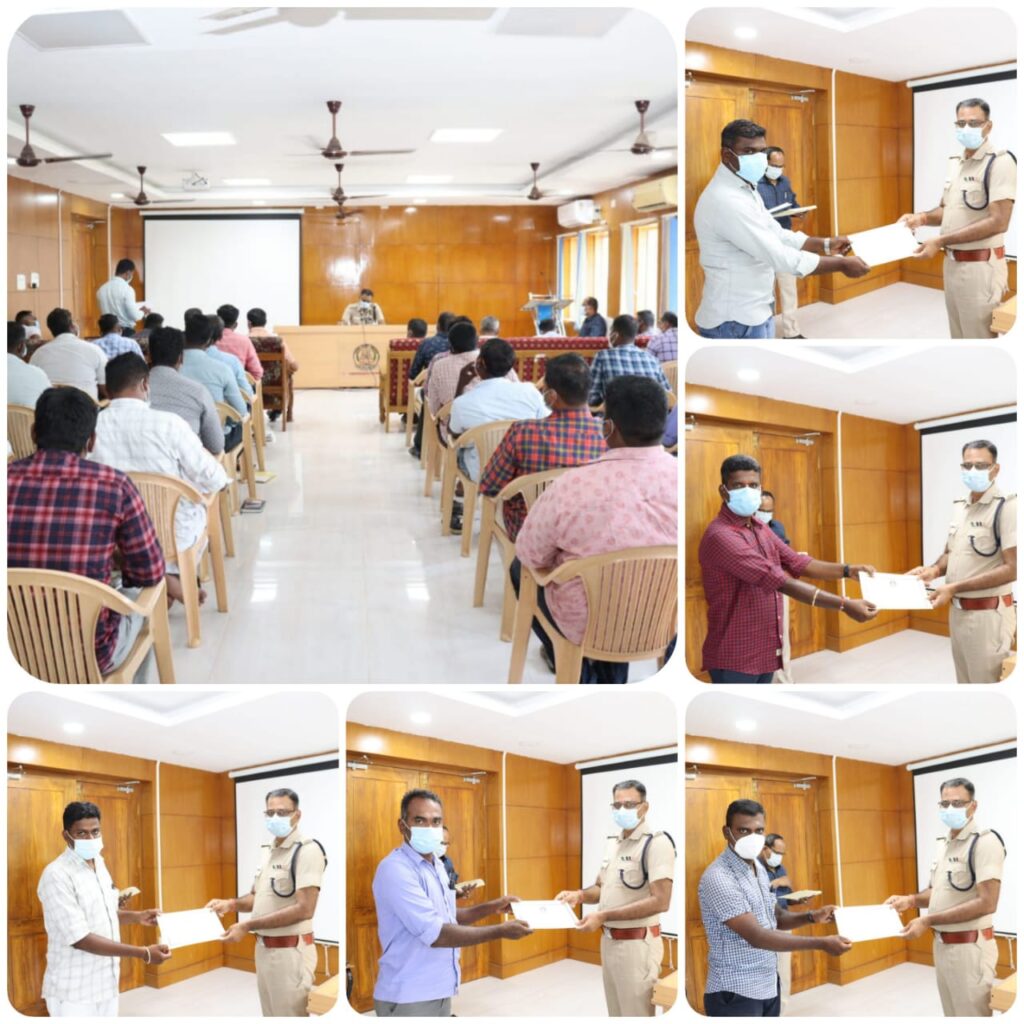 நடைபெற்ற சட்டமன்ற தேர்தலின் போது தூத்துக்குடி மாவட்டத்தில் சிறப்பாக பணியாற்றிய தனிப்பிரிவு போலீசாருக்கு மாவட்ட காவல் கண்காணிப்பாளர் திரு. எஸ். ஜெயக்குமார் அவர்கள் சான்றிதழ் வழங்கி பாராட்டினார்.