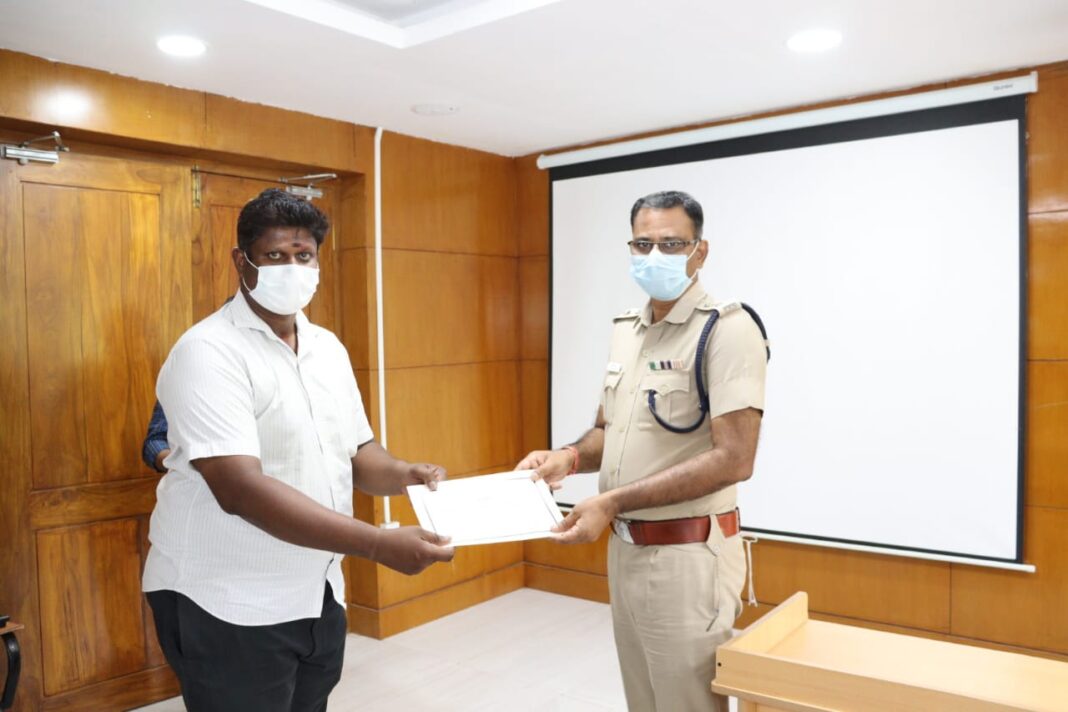 நடைபெற்ற சட்டமன்ற தேர்தலின் போது தூத்துக்குடி மாவட்டத்தில் சிறப்பாக பணியாற்றிய தனிப்பிரிவு போலீசாருக்கு மாவட்ட காவல் கண்காணிப்பாளர் எஸ். ஜெயக்குமார் சான்றிதழ் வழங்கி பாராட்டினார்.