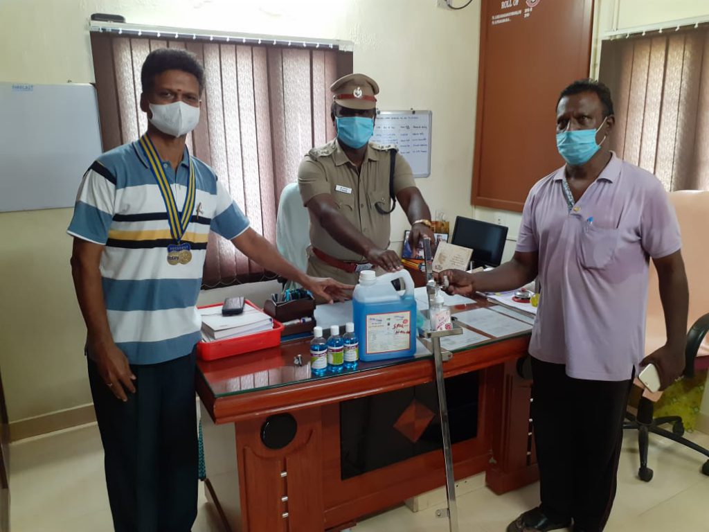 தூத்துக்குடி ஸ்பிக் ரோட்டரி கிளப் சார்பில் தூத்துக்குடி மாநகர பகுதிகளில் உள்ள காவலர்களுக்கு முகக்கவசம், சானிடைசர் மற்றும் ஆபீஸ் அலுவலகத்தில் பயன்படுத்தக் கூடிய ஆட்டோமேட்டிக் மெஷின் போன்ற உபகரணங்கள் டவுண் டி.எஸ்.பி பிரகாஷ் அவர்களிடம் வழங்கப்பட்டது.