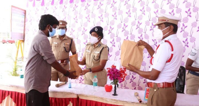 வைஷ்ணவா கல்லூரி எதிரில் உள்ள சிக்னலில் சரியாக சாலை விதிமுறைகளை பின்பற்றாத வாகன ஓட்டிகளை அழைத்து நாற்காலியில் அமரவைத்து உயிர் பாதுகாப்பு பற்றிய சாலை விதிமுறைகளையும் மற்றும் கொரோனா பற்றிய அறிவுறை வழங்கியும் மற்றும் விதிமுறைகளை பின்பற்றும் வாகன ஓட்டிகளுக்கு பரிசு பொருட்கள் வழங்கியும் கௌரவித்தார். அதுமட்டுமன்றி கொரோனா பற்றிய விழிப்புணர்வுடன் முககவசம் கிருமிநாசினி ஊட்டச்சத்து பொருள் அடங்கிய உணவும் வழங்கினார்.
