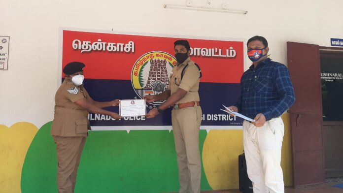தென்காசி மாவட்டத்தில் கடந்த சில நாட்களுக்கு முன் புளியங்குடி பகுதியில் சாலையில் நடந்து சென்ற நபரை அதே பகுதியில் உள்ள வேறு சமுதாயத்தை சேர்ந்த 03 நபர்கள் வழிமறித்து அவதூறாக பேசி அரிவாளால் வெட்டி கொலை முயற்சியில் ஈடுபட்டதை அடுத்து உடனடியாக குற்றவாளிகளை பிடித்து கைது செய்து இரு வேறு தரப்பு சமுதாயத்திற்கும் இடையே பிரச்சனை வராமல் பார்த்துக்கொண்ட புளியங்குடி தனிப்பிரிவு சார்பு ஆய்வாளர்வேல்முருகன் அவர்கள் தலைமை காவலர் ஜெயராஜ் மற்றும் முதல்நிலை காவலர் மாரிச்சாமி ஆகியோருக்கும்.