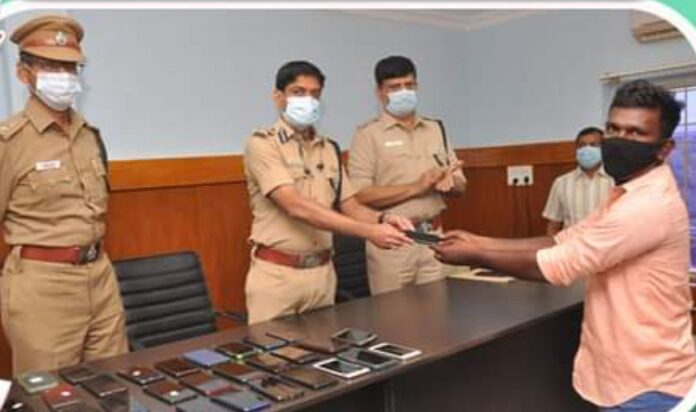 திருநெல்வேலி மாநகர எல்லைக்குட்பட்ட பகுதிகளில் திருடுபோன மற்றும் தொலைந்துபோனது சம்பந்தமாக 2020 – ம் ஆண்டு பெறப்பட்ட 6 மனுக்கள் மற்றும் 2021 – ம் ஆண்டு பெறப்பட்ட 38 மனுக்கள் மீது திருநெல்வேலி மாநகர சைபர் கிரைம் மூலம் விரைவான நடவடிக்கைகள் மேற்கொள்ளப்பட்டு சுமார் ரூபாய் 5 லட்சத்து 4 ஆயிரம் மதிப்புள்ள 43 செல்போன்கள் கண்டுபிடிக்கப்பட்டு இன்று 24-06-2021 தேதி திருநெல்வேலி மாநகர காவல் ஆணையாளர் அலுவலகத்தில், நெல்லை மாநகர காவல் ஆணையாளர் பொறுப்பு பிரவீன்குமார் அபினபு இ.கா.ப மூலம் உரியவர்களிடம் ஒப்படைக்கப்பட்டது. இந்நிகழ்ச்சியில் காவல் துணை ஆணையாளர்கள் ராசராசன் (சட்டம் மற்றும் ஒழுங்கு) சுரேஷ்குமார் அவர்கள் ( குற்றம் மற்றும் போக்குவரத்து) அவர்கள், நுண்ணறிவு பிரிவு காவல் ஆணையாளர் ஆறுமுகம் நுண்ணறிவு பிரிவு காவல் ஆய்வாளர் ரமேஷ் கண்ணன் அவர்கள், நெல்லை மாநகர சைபர் கிரைம் பிரிவு காவல் ஆய்வாளர் கோமதி தொழில்நுட்ப பிரிவு உதவி ஆய்வாளர்.ஜெயப்பிரகாஷ் அவர்கள் மற்றும் சைபர் கிரைம் பிரிவு காவல் உதவி ஆய்வாளர்கள் மற்றும் சைபர் கிரைம் பிரிவு காவலர்கள் ஆகியோர் கலந்து கொண்டனர்.