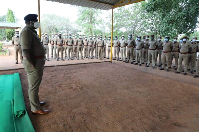 காவல்துறையினர்பொதுமக்களிடம் எவ்வாறு நடந்து கொள்ள வேண்டும் என்பதுகுறித்து தருமபுரி மாவட்ட காவல் கண்காணிப்பாளர் கலைச்செல்வன் ஐபிஎஸ் ஆயுதப்படைகாவலர்களுக்கு ஆலோசனை வழங்கி குறைகளை கேட்டறிந்தார்.