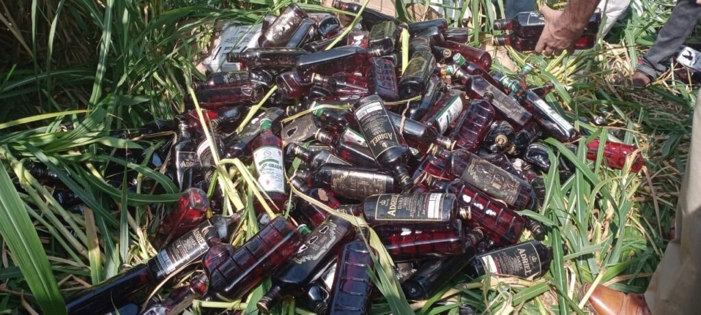 சம்பவ இடத்திற்கு விரைந்து வந்த மாவட்ட காவல் கண்காணிப்பாளர், சம்பவ இடத்தில்நேரில் ஆய்வு மேற்கொண்டார். தப்பியோடிய குற்றவாளியை போலீசார் தேடி வருகின்றனர். தனியாருக்கு சொந்தமான தோட்டத்தில் வெளி மாநில மதுபாட்டில்களை பதுக்கி வைத்திருந்த சம்பவம் அப்பகுதி மக்களிடையே பரபரப்பை ஏற்படுத்தியது.
