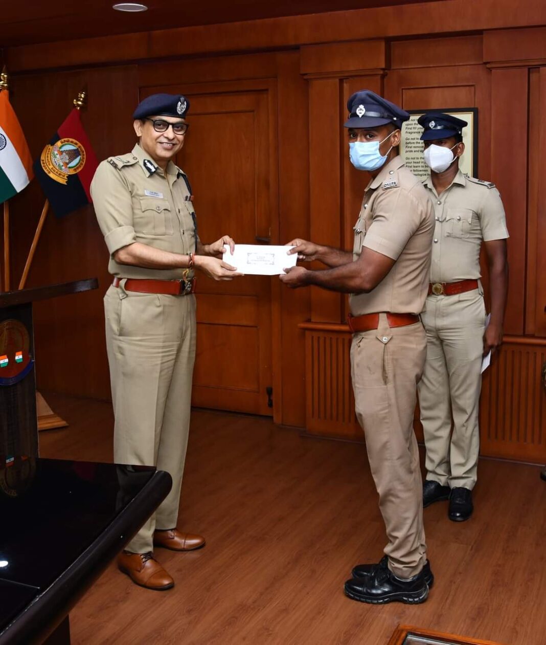 இரவு பணியில் விழிப்புடன் செயல்பட்டு குற்றவாளிகளை கைது செய்த F3 நுங்கம்பாக்கம் காவல் நிலைய காவலர்கள் தாமோதிரன் ( கா 52866 ) , அஜித் அலி ( ( கா .52871 ) , அமிர்தபாண்டியன் ( கா .49567 ) ஆகியோரை சென்னை பெருநகர காவல் ஆணையாளர் சங்கர் ஜிவால் , இ.கா.ப. , இன்று நேரில் அழைத்து பாராட்டி வெகுமதி வழங்கினார் .