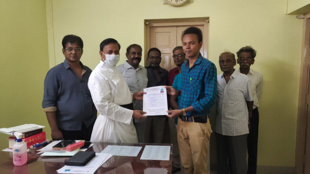 வேட்பு மனுக்களை சேகரத் தலைவரும், திருமண்டல குருத்துவ செயலருமான, குருவானவர் மோசஸ் ஜெபராஜ் பெற்றுக் கொண்டார்.
