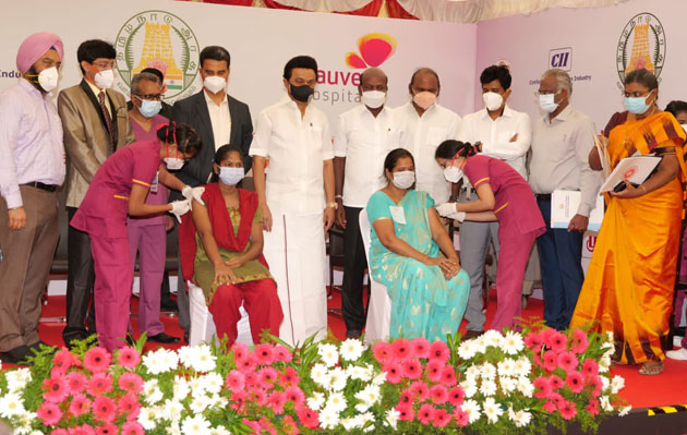 தனியார் மருத்துவமனைகளில் இலவச கரோனா தடுப்பூசி திட்டத்தை முதல்வர் மு.க.ஸ்டாலின் தொடங்கி வைத்தார்.