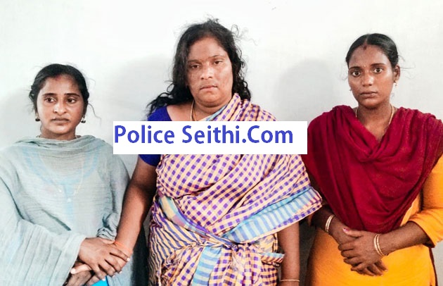 தூத்துக்குடி அருகே ஓடும் பேருந்தில் பெண்ணிடம் 1¾ பவுன் தங்கச் செயினை திருடிய 3 பெண்களை போலீசார் கைது செய்தனர்.
