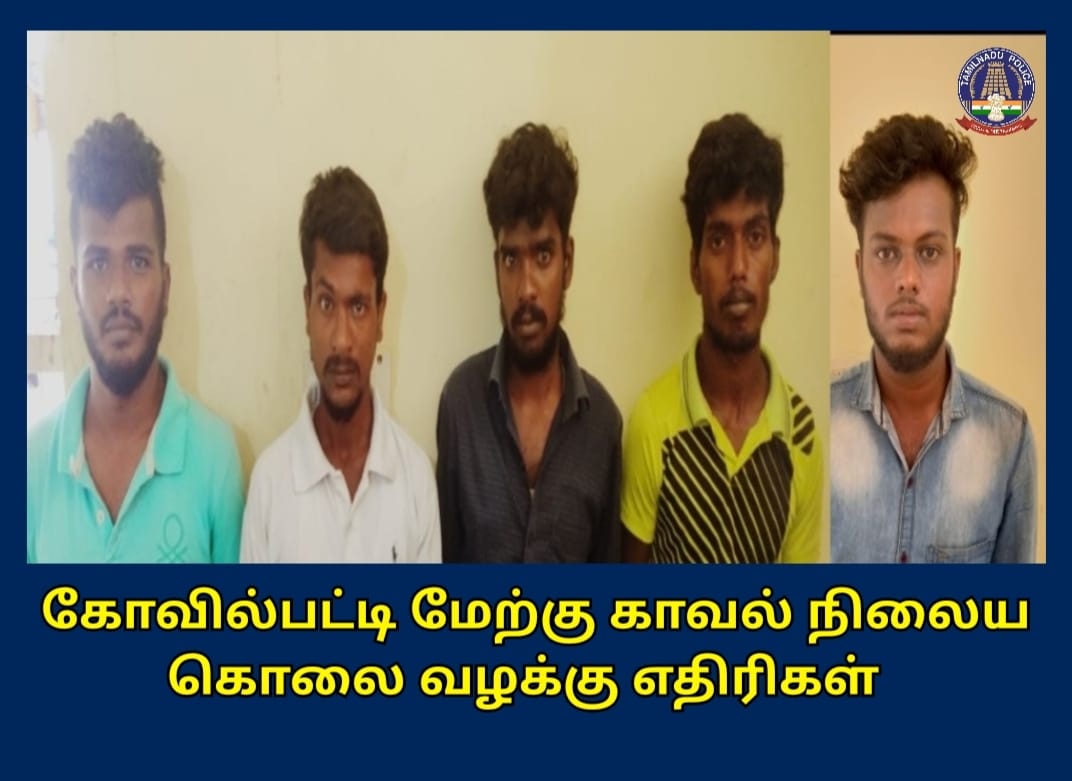 கோவில்பட்டி மேற்கு காவல் நிலைய எல்லைக்குட்பட்ட பகுதியில் ஒருவர் கொலை செய்யப்பட்ட வழக்கில் 5 பேர் கைது – கைது செய்த தனிப்படை போலீசாருக்கு மாவட்ட காவல் கண்காணிப்பாளர் திரு. எஸ். ஜெயக்குமார் அவர்கள் பாராட்டு.
