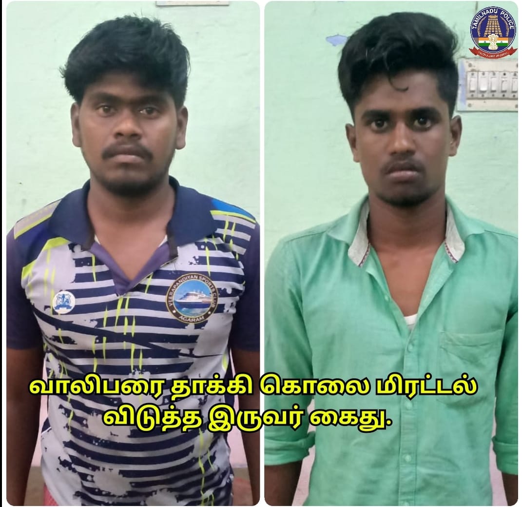 முறப்பநாடு காவல் நிலைய எல்லைக்குட்பட்ட பகுதியில் ஒரு பெண்ணை காதலிப்பதில் ஏற்பட்ட தகராறில் வாலிபரை தாக்கி கொலை மிரட்டல் விடுத்த எதிரிகள் இருவர் கைது – உடனடியாக எதிரிகளை கைது செய்த போலீசாரை மாவட் காவல் கண்காணிப்பாளர் திரு. எஸ். ஜெயக்குமார் அவர்கள் பாராட்டினார்.