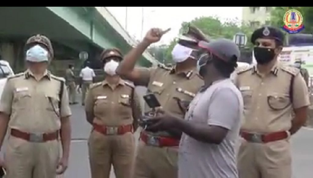 சென்னையில் ஊரடங்கு விதிமீறல்களை ட்ரோன் கேமரா மூலம் காவல்துறையினர் கண்காணிப்பதை காவல் ஆணையாளர் விசுவநாதன் பார்வையிட்டார்.