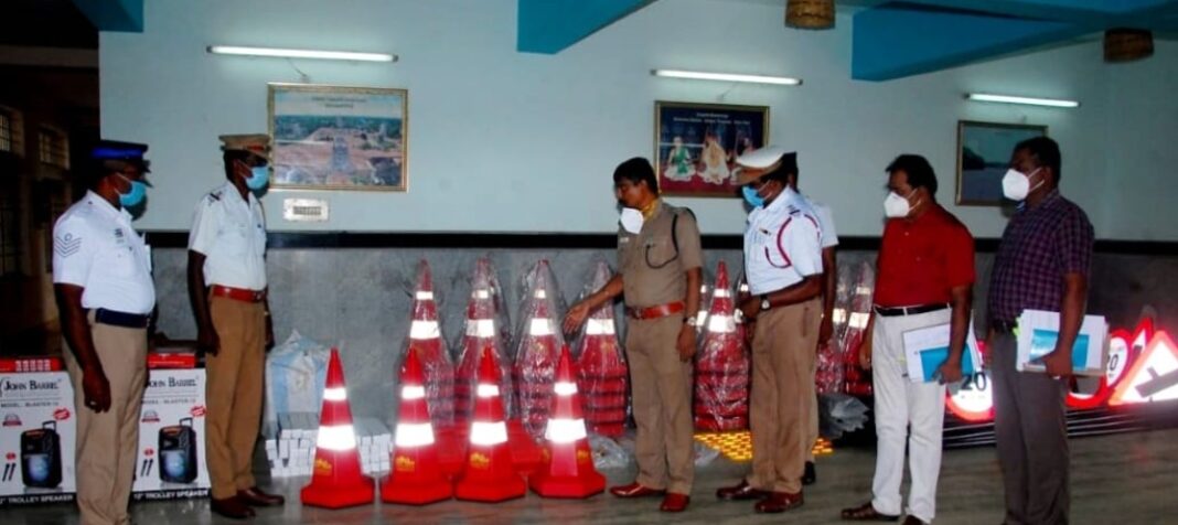 பொதுமக்கள் நலன் கருதி தமிழக அரசால் ஒதுக்கீடு செய்யப்பட்ட சாலை பாதுகாப்பு நிதியில் மாவட்ட காவல் கண்காணிப்பாளர் விஜயகுமார் IPS அவர்கள் தேவையான சாலை பாதுகாப்பு உபகரணங்களை வாங்கி அதனை நேற்று அனைத்து காவல்நிலையங்களுக்கும்