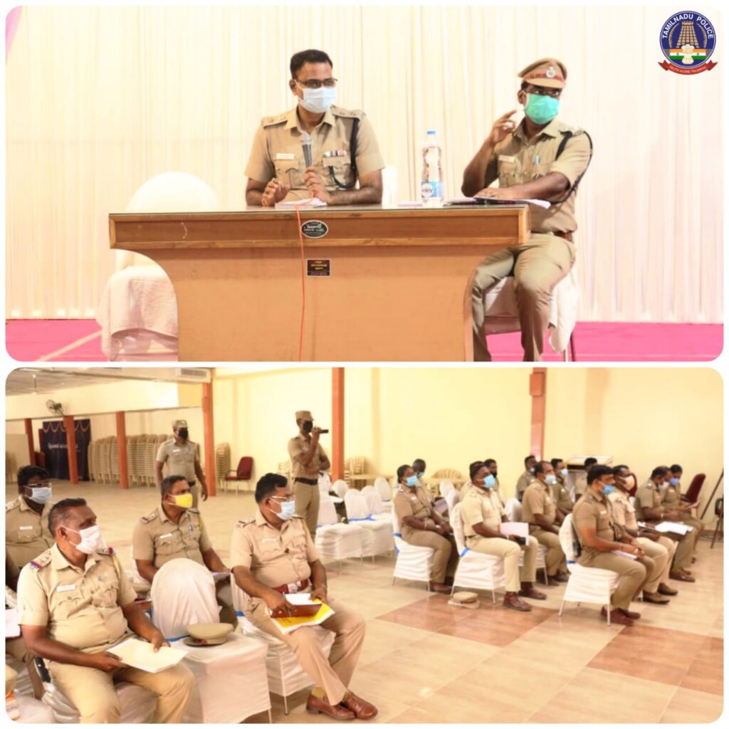 தூத்துக்குடி ராஜ் மஹாலில் இன்று (31.08.2021) தூத்துக்குடி நகர உட்கோட்டத்தில் உள்ள அனைத்து காவல் நிலையங்களில் பணிபுரியும் காவல் ஆய்வாளர்கள் மற்றும் உதவி ஆய்வாளர்களுக்கான அறிவுரை கூட்டம் மாவட்ட காவல் கண்காணிப்பாளர் திரு. எஸ். ஜெயக்குமார் அவர்கள் தலைமையில் நடைபெற்றது.