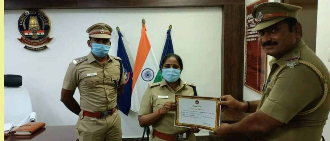 இராணிப்பேட்டை மாவட்ட காவல் கண்காணிப்பாளர் வழிகாட்டுதலின் பேரில் இராணிப்பேட்டை அனைத்து மகளிர் காவல் நிலையத்தில் தொடரப்பட்ட பாலியல் புகார் வழக்கில் தேடப்பட்டு வந்த குற்றவாளிகளை விரைந்து கைது செய்ததற்காக இராணிப்பேட்டை அனைத்து மகளிர் காவல் நிலைய ஆய்வாளர் வாசுகி தலைமையிலான காவலர்களுக்கும் மேலும் வாலாஜா காவல் நிலையத்தில் புகாரான திருட்டு வழக்கில் சம்பந்தப்பட்ட கைதிகளை விரைந்து கைது செய்ததற்காக இராணிப்பேட்டை காவல் ஆய்வாளர் பார்த்தசாரதி மற்றும் அவர் தலைமையிலான உதவி ஆய்வாளர், சிறப்பு உதவி ஆய்வாளர், காவலர்கள் ஆகியோரை பாராட்டி மாவட்ட காவல் கண்காணிப்பாளர் டாக்டர். தீபா சத்யன் இ. கா. ப. பாராட்டு சான்றிதழ் வழங்கினார்.