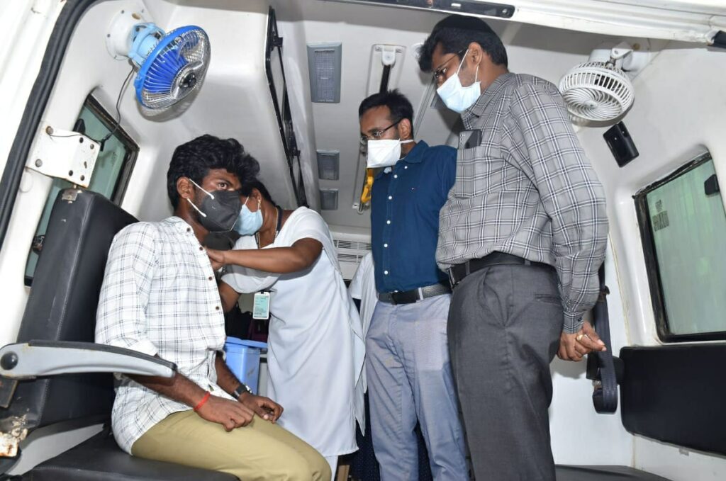 தற்போது புதிய அறிமுகமாக மாற்றுத்திறனாளிகள், கர்ப்பிணி தாய்மார்கள், வயது முதிர்ந்தோர்கள், நோயினால் பாதிக்கப்பட்டு வீட்டை விட்டு வெளியே வர இயலாதவர்கள், தொடர் வியாபாரத்தால் வணிக வளாகத்தை விட்டு தடுப்பூசி முகாம்களுக்கு செல்ல முடியாதவர்களுக்காக நடமாடும் தடுப்பூசி மருத்துவக் குழு அமைந்த கொரோனா தடுப்பூசி