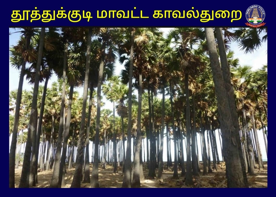 தூத்துக்குடி மாவட்டம் சூரங்குடி காவல் நிலைய எல்லைக்குட்பட்ட பகுதியில் தமிழக அரசு அறிவித்துள்ள தமிழ்நாட்டு மரங்களின் அடையாள சின்னமான 42 பனை மரங்களை வெட்டியவர் மீது போலீசார் வழக்குப்பதிவு – மாவட்ட ஆட்சியர் அவர்கள் அனுமதியின்றி பனை மரங்களை வெட்டினால் சட்டப்படி நடவடிக்கை எடுக்கப்படும் என மாவட்ட காவல் கண்காணிப்பாளர் திரு. எஸ். ஜெயக்குமார் அவர்கள் தெரிவித்துள்ளார்.