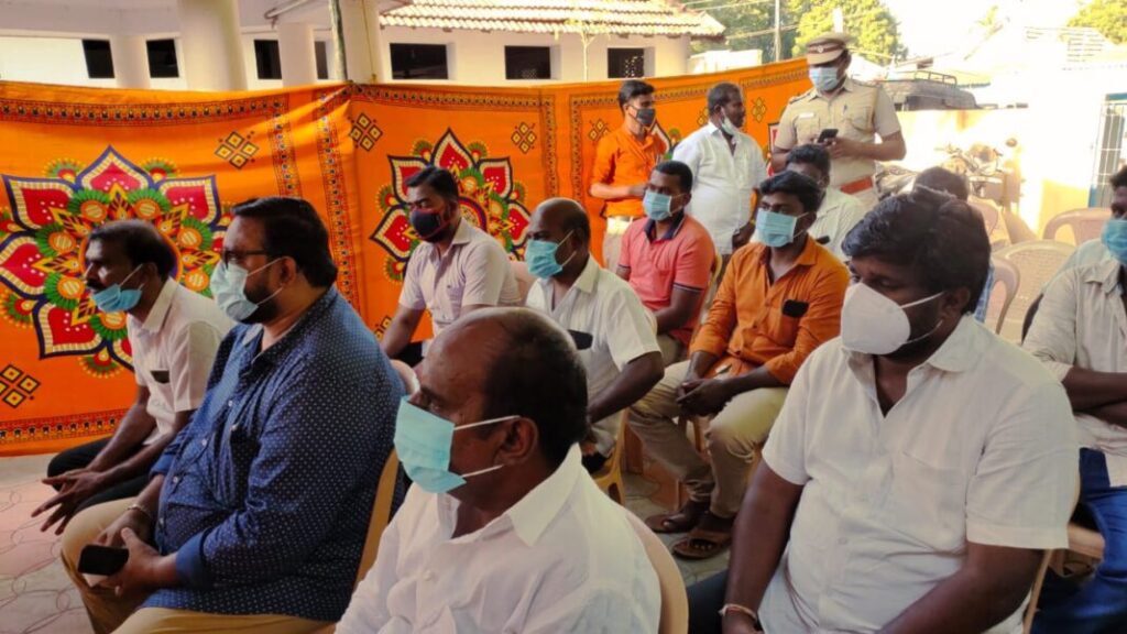 ஆலோசனை கூட்டத்தில் தூத்துக்குடி மாவட்டத்தில் கரோனா தடுப்பு முன்னெச்சரிக்கை நடவடிக்கையாக முழுவதும் தளர்வுகளுடன் கூடிய 144 தடைஉத்தரவு 31.10.2021 வரை நீட்டிப்பு செய்யப்பட்டு அமலில் உள்ளதால் வரும் செப்டம்பர் 26ம் தேதி நடைபெற உள்ள வெங்கடேஷ் பண்ணையார் 18ம் ஆண்டு நினைவு நாளை முன்னிட்டு பொதுமக்கள் இரு சக்கரம் மற்றும் நான்கு சக்கர வாகன ஊர்வலத்திற்கோ, ரத ஊர்வலத்திற்கோ மற்றும் எவ்வித ஊர்வலத்திற்கோ அனுமதி கிடையாது.
