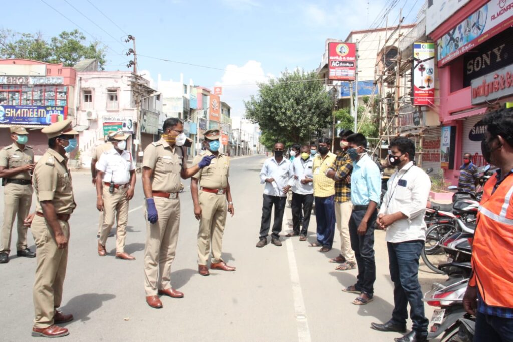 தூத்துக்குடி மாவட்டத்தில் இன்று (19.07.2020) ஒரு நாள் முழு ஊரடங்கு அமல்படுத்தப்பட்டுள்ளது. மேலும் இதே போன்று வரும் 26.07.2020 ஞாயிற்றுக்கிழமை அன்றும் முழு ஊரடங்கு தமிழக அரசு அறிவித்துள்ளது. இன்று மாவட்டம் முழுவதும் முழு ஊரடங்கு அமலில் உள்ளது. இந்நிலையில் காவல்துறையினர் மேற்கொள்ளும் ஊரடங்கு பாதுகாப்பு பணியினை தூத்துக்குடி மாவட்ட காவல் கண்காணிப்பாளர் ஜெயக்குமார் தூத்துக்குடி குரூஸ் பர்னாந்து சிலை சந்திப்பில் நேரில் சென்று ஆய்வு செய்தார்.