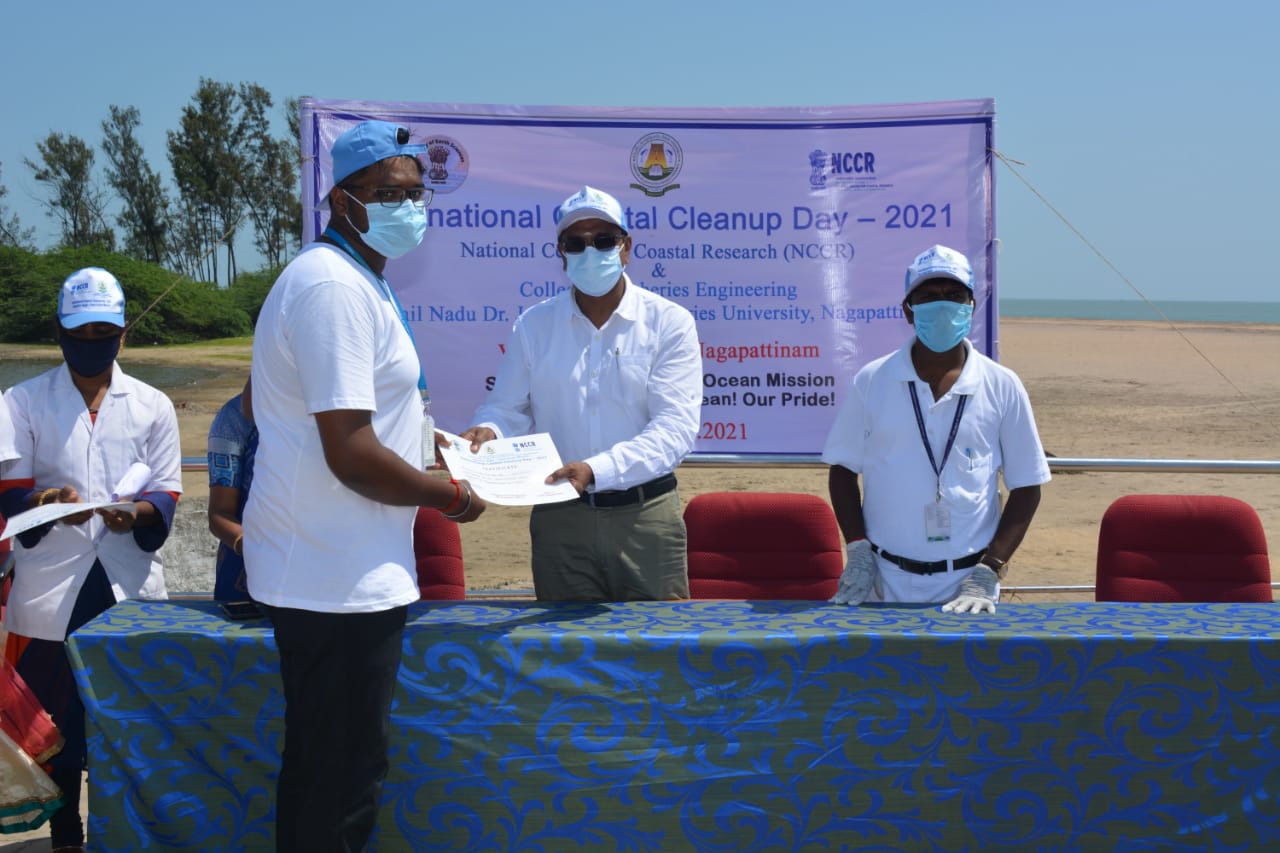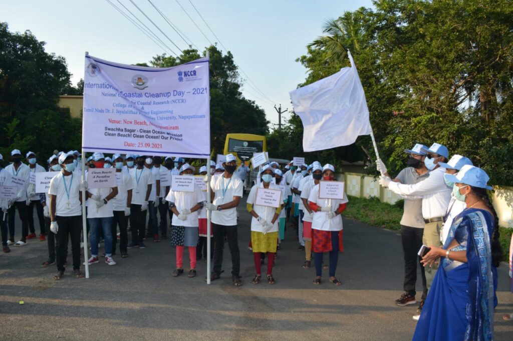 மீன்வளப் பொறியியல் கல்லூரி, தமிழ்நாடு டாக்டர் ஜெ. ஜெயலலிதா மீன்வளப் பல்கலைக்கழகம், நாகப்பட்டினம் மற்றும் தேசிய கடலோர ஆராய்ச்சி மையம் (என்சிசிஆர்), சென்னை இணைந்து 25.09.2021 அன்று நாகப்பட்டினம் புதிய கடற்கரையில் “சர்வதேச கடலோர தூய்மை நாள் – 2021” ஏற்பாடு செய்திருந்தது. . மாண்புமிகு மாவட்ட ஆட்சியர் டாக்டர்.அருண் தம்புராஜ், ஐஏஎஸ் மற்றும் டாக்டர் ஜெ.ஜெயலலிதா மீன்வளப் பல்கலைக்கழகத்தின் மதிப்பிற்குரிய துணைவேந்தர் முனைவர்.கோ.சுகுமார் ஆகியோர் கொடி அசைத்து வெள்ளிப்பாளையம் காவல் கண்காணிப்பாளர் பங்களாவில் இருந்து மாணவர்கள் பேரணியுடன் நிகழ்ச்சி தொடங்கி வைத்தனர் . நாகப்பட்டினம் புதிய கடற்கரையில் அழைப்பிதழோடு நிகழ்ச்சி துவக்கப்பட்டது. மீன்வளப் பொறியியல் கல்லூரியின் முதல்வர் பொறுப்பு முனைவர். ந.மணிமேகலை, சிறப்பு விருந்தினரை வரவேற்றார். தமிழ்நாடு மாண்புமிகு துணைவேந்தர் டாக்டர் ஜெ.ஜெயலலிதா மீன்வளப் பல்கலைக்கழகம் முனைவர்.கோ.சுகுமார் விழாவிற்கு தலைமை வகித்து துணைவேந்தர் உரையை வழங்கியுள்ளார். மாவட்ட ஆட்சியர், நாகப்பட்டினம் தலைமை விருந்தினராக உரையாற்றினார். சிறப்பு விருந்தினர் உரையில், மாவட்ட ஆட்சியர், நாகப்பட்டினம் சுற்றுச்சூழலையும் கடற்கரையையும் மாசுபடுத்தாமல் பொறுப்பான முறையில் கழிவுகளை அகற்ற வலியுறுத்தினார்.