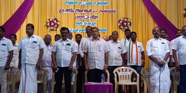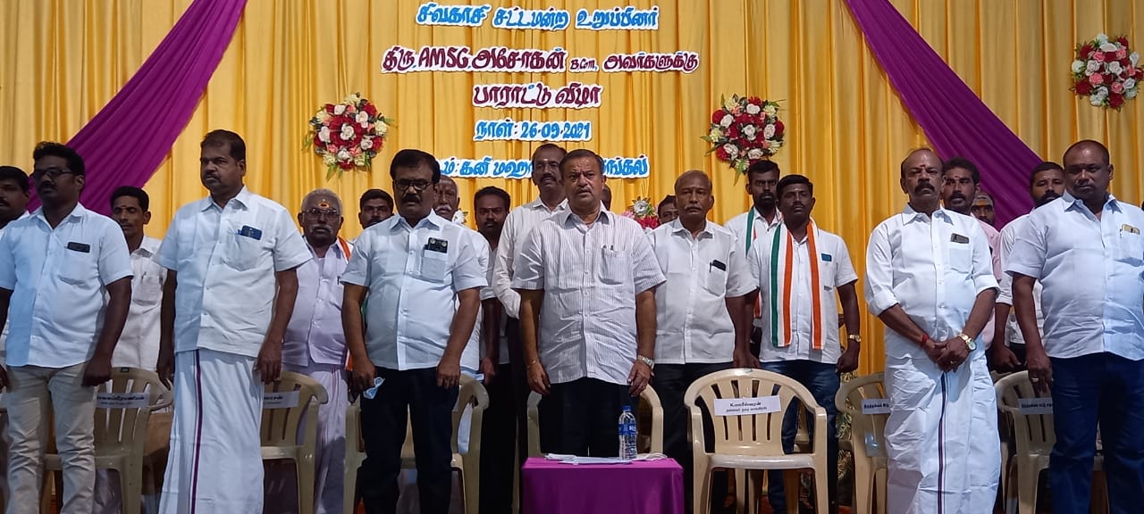 உள்ள பொதுமக்கள் மற்றும் தொகுதி முழுவதும் பலரும் இந்த பாராட்டு விழாவில் பங்கேற்றனர். சிவகாசி நகராட்சியில் பல்வேறு வளர்ச்சி திட்டங்களை கொண்டு வந்து செயல்படுத்தி மக்களிடம் பாராட்டு பெற்றுள்ளது போல் தற்போது சிவகாசி சட்டமன்றத் தொகுதிக்குட்பட்ட அனைத்து பகுதிகளிலும் சிறப்பான திட்டங்களை சாதனையை நிகழ்த்தி வருகிறார் சட்டமன்ற உறுப்பினர் அசோகன் இவருக்கு பாராட்டு விழா வைக்கும் நிகழ்ச்சி சிறப்பான ஏற்பாடு செய்யப்பட்டது