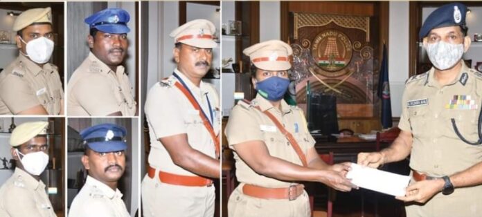 பணியின் போது விழிப்புடன் இருந்து சமயோஜிதமாக செயல்பட்டு தீக்குளித்தவர் மீது உடனடியாக ஒரு முழு கேன் தண்ணீரை ஊற்றி தீயை அணைத்து அந்த நபரை காப்பாற்றியமைக்காக மேற்கண்ட காவல்துறையினரை தமிழ்நாடு காவல்துறை தலைமை இயக்குநர் படைத்தலைவர் முனைவர் C.சைலேந்திர பாபு.¸ இ.கா.ப நேரில் அழைத்து பாராட்டியதோடு பண வெகுமதியும் வழங்கினார்.