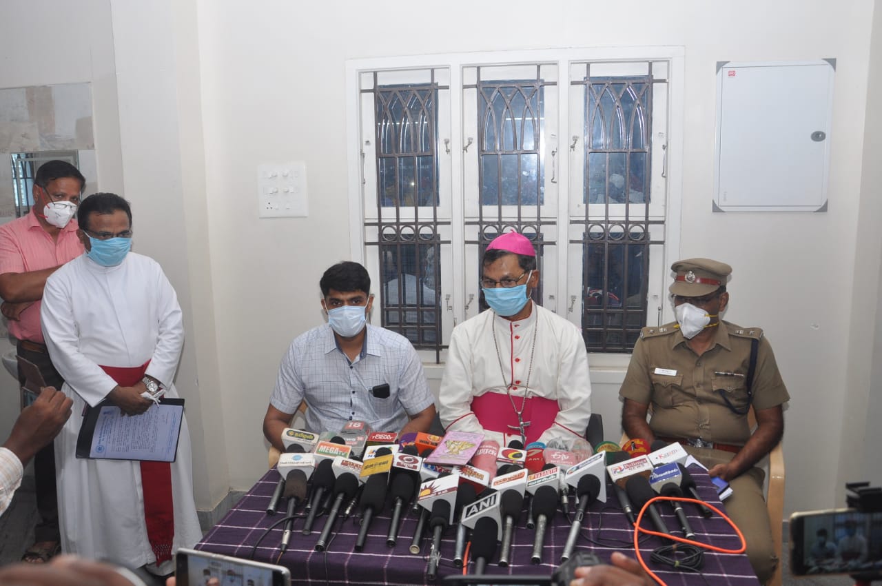 இத தொடர்பாக தூத்துக்குடி மாவட்ட ஆட்சியர் சந்தீப் நந்தூரி, கத்தோலிக்க ஆயர் ஸ்டீபன் ஆகியோ் இன்று செய்தியாளர்களை சந்தித்தனர். அப்போது ஆயர் கூறியதாவது: முத்துநகரின் குலதெய்வமாக கருதப்படும் பனிமய மாதாவின் பெருவிழா கடந்த 438 ஆண்டுகளாக நடைபெற்று வருகிறது. இந்த ஆண்டு கரோனா ஊரடங்கு காரணமாக பொதுமக்கள் யாரும் பங்கேற்க முடியாத நிலை ஏற்பட்டுள்ளது. இதனால் கொடிபவனி, திருவிருந்து விழா, நற்கருனை பவனி ஆகியவை நடைபெறாது.