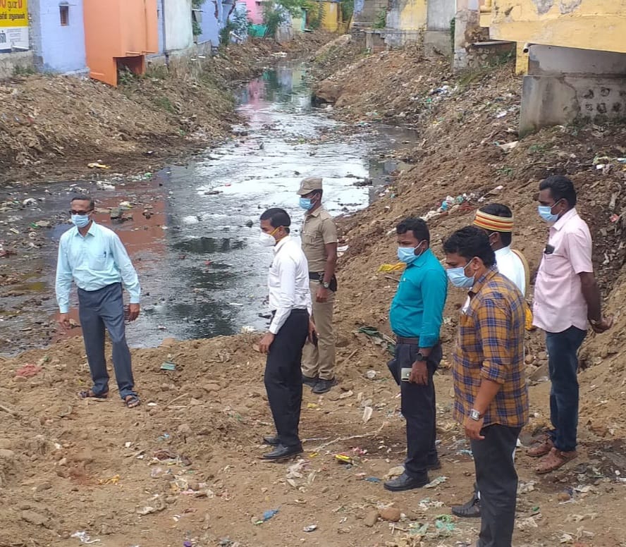 கடையநல்லூர் நகராட்சி பகுதியில் ஓடைக்குள் இறங்கி ஆய்வு செய்த மாவட்ட ஆட்சியர் . பொதுமக்கள் பாராட்டு