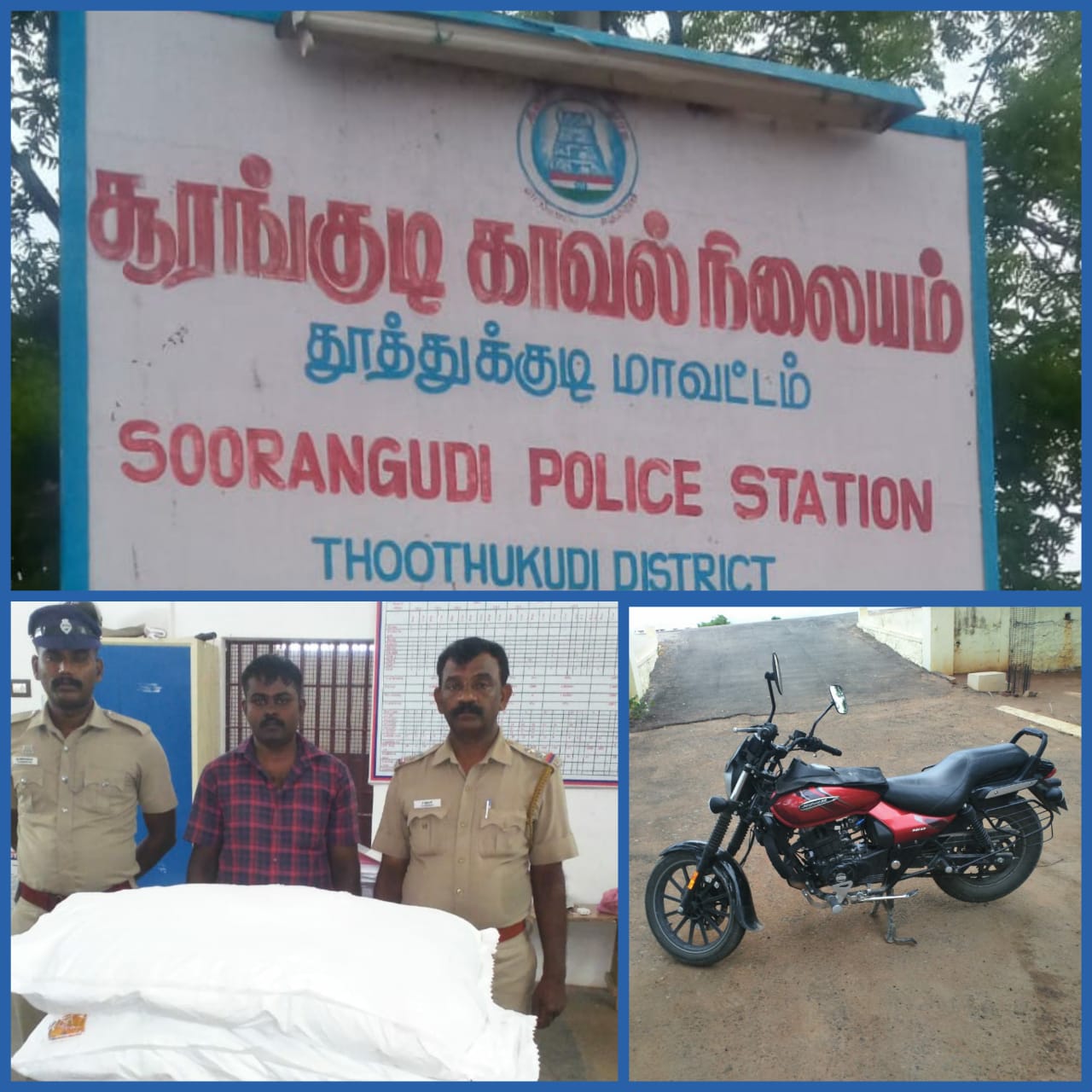 ♻️ இதுகுறித்து சூரங்குடி காவல் நிலைய ஆய்வாளர் திருமதி. கலா வழக்குப்பதிவு செய்து அந்த இரு சக்கர வாகனத்தை ஓட்டி வந்த ராமநாதபுரம் மாவட்டம் பெருநாழி பகுதியைச் சேர்ந்த கணேசன் மகன் கருப்பசாமி (31) என்பவரை கைது செய்தார். மேலும் அவரிடமிருந்து ரூபாய் 15,000/- மதிப்பிலான புகையிலை பொருட்களும், இரு சக்கர வாகனமும் பறிமுதல் செய்யப்பட்டது.