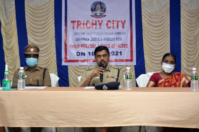 திருச்சி மாநகரம், கே.கே.நகர் ஆயுதப்படை வளாகம், சமுதாயக்கூடத்தில் சிறார் நீதி (குழந்தைகள் பராமரிப்பு மற்றும் பாதுகாப்பு சட்டம்) Child in Care and Protection Act 2015 இன் பிரிவு 107-இன் படி சட்டத்தின் முன் முரண்படும் (Juvenile In conflict with law) இளம் சிறார்களை கண்காணித்தும் அவர்களது பிரச்சனைகளை கையாள்வது பற்றியும் பயிற்சி அளிக்கப்பட்டு, Juvenile Justice Act, 2015-ல் உள்ள சட்ட சீரத்திருத்தங்களை பற்றியும் ஒரு நாள் பயிற்சி வகுப்பு நடத்தப்படுகிறது. நேற்று திருச்சி மாநகர காவல் ஆணையர் கார்த்திகேயன், இ.கா.ப.,இப்பயிற்சி வகுப்பை தொடங்கி வைத்து காவல் அதிகாரிகள் மற்றும் ஆளிநர்களுக்கு அறிவுரை வழங்கினார்
